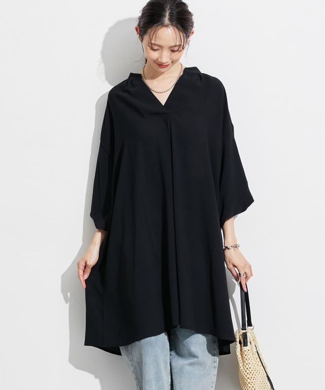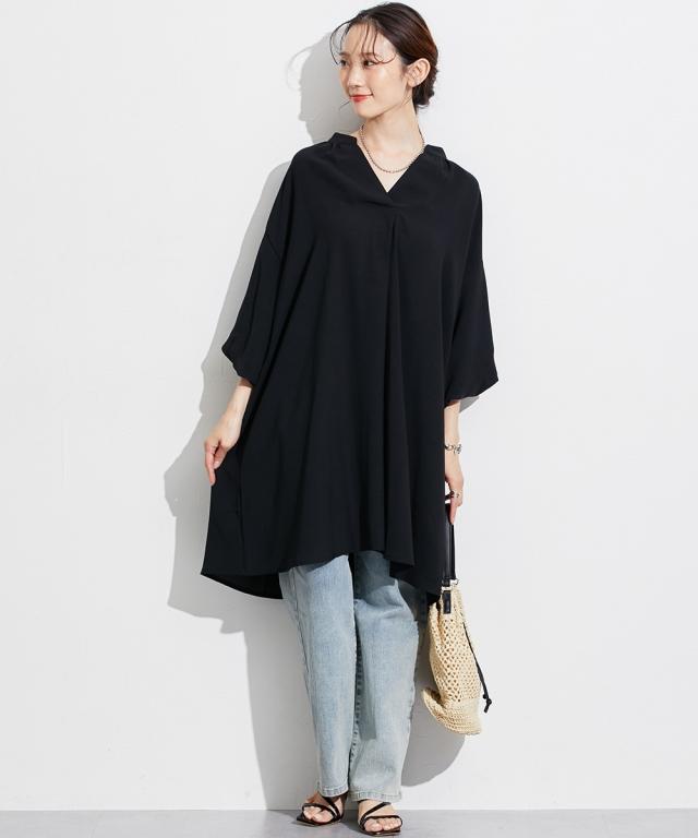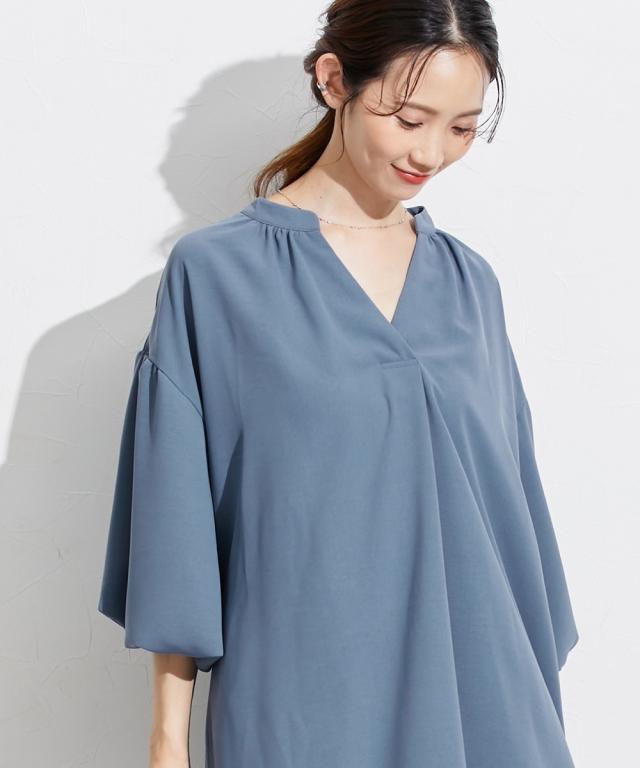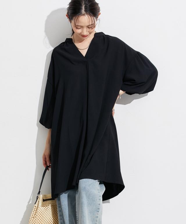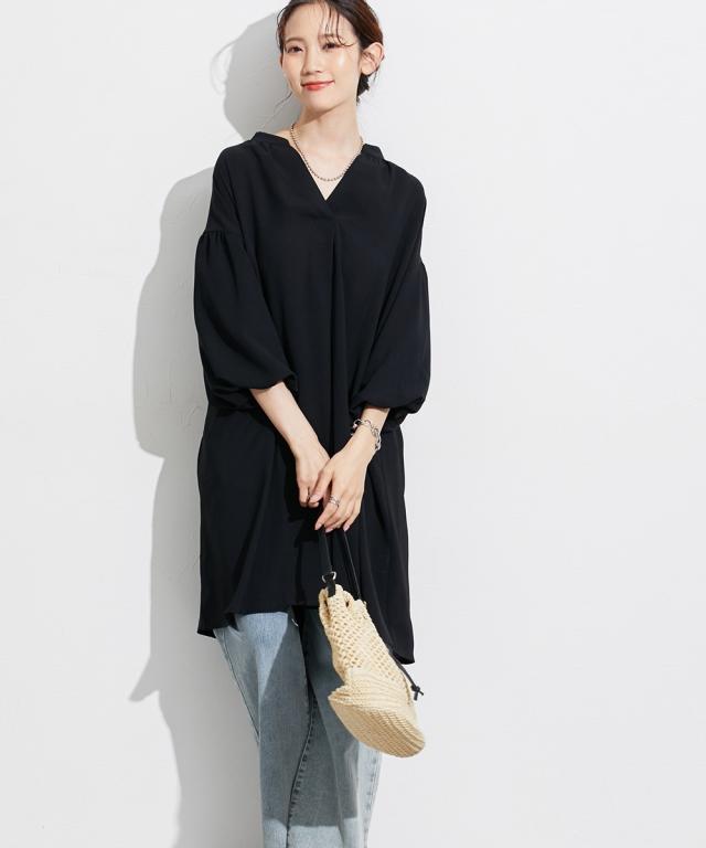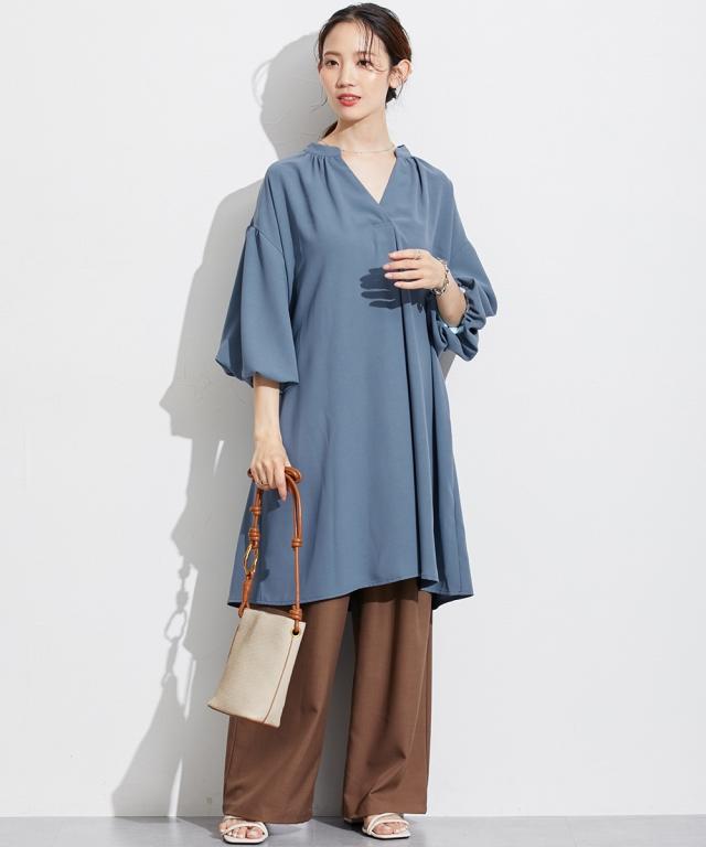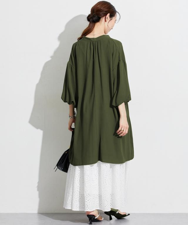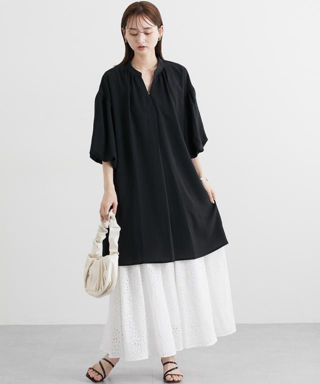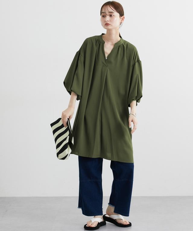 上品見えするのに、ゆるっと楽ちん。体型カバーも叶える優秀チュニックワンピース。 しっかり体型カバーするデザインで、デイリーに活躍するアイテムです。 ●デザイン ・体型カバーを叶えるゆったり設計。ゆるめのシルエットで楽ちんに着こなせる! ・膝丈ラインの丈感で気になるお尻周りはもちろん、太ももなどの脚のラインもしっかりカバー ・ゆるっとしたデザインがすっきり綺麗見えするスキッパーデザイン ・ほんのりパフ袖で大人可愛い印象にを叶えつつ、気になる二の腕も隠れる袖丈 ●素材 キレイなとろみ感があり、上品なブロード素材。 きちんと見えるしっかりとした質感で大人女子に嬉しい1枚です。 ●おすすめのコーディネート 1枚で着るだけでサマになるチュニックですが、ボトムスとのレイヤードスタイルもおすすめです。 細身のパンツやレギンスと合わせて、すっきりとした印象に。 ゆったりとしたワイドパンツやスカートと合わせれば、リラックス感のある大人カジュアルスタイルが完成します。 足元はスニーカーやサンダルでカジュアルに、パンプスやローファーで上品に。 アクセサリーは、華奢なネックレスやピアスをプラスして、女性らしさを演出するのがおすすめです。 シンプルな