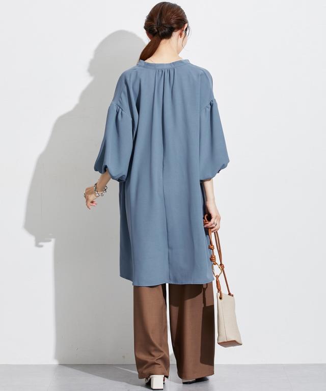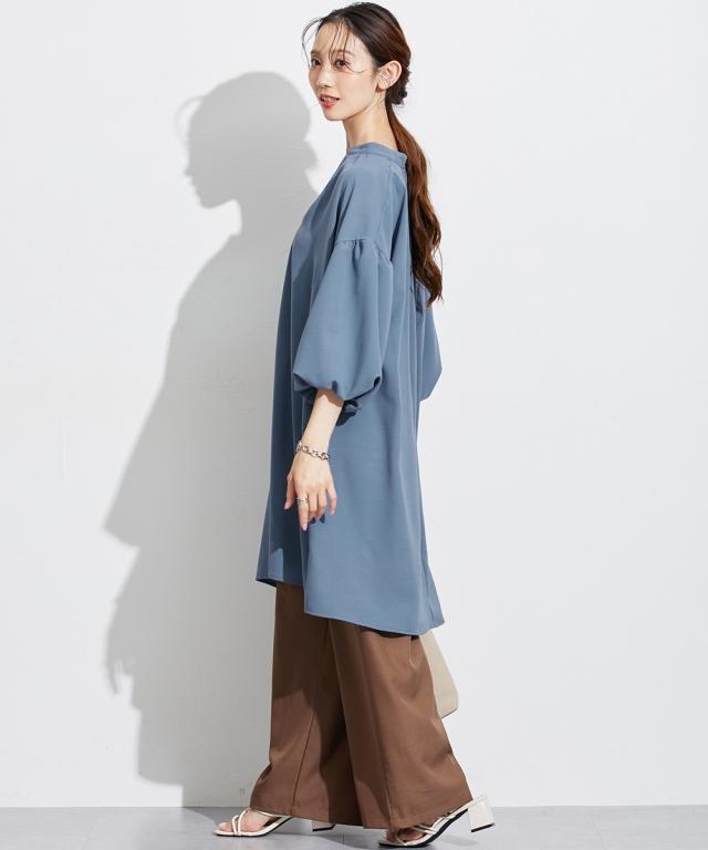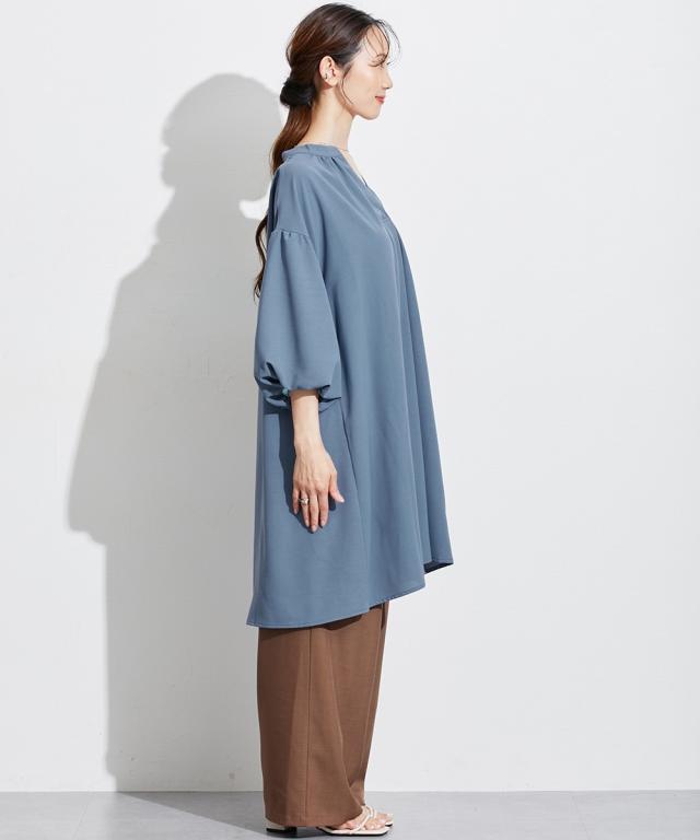 チュニック レディース とろみブロードパフ袖スキッパー シャツ ワンピース 体型カバー お尻隠れる | L/LL/3L | ニッセン nissen
