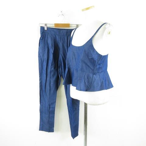 【中古】M.H q.b.c セットアップ ビスチェ ロングテーパードパンツ 青 M *A572 レディース