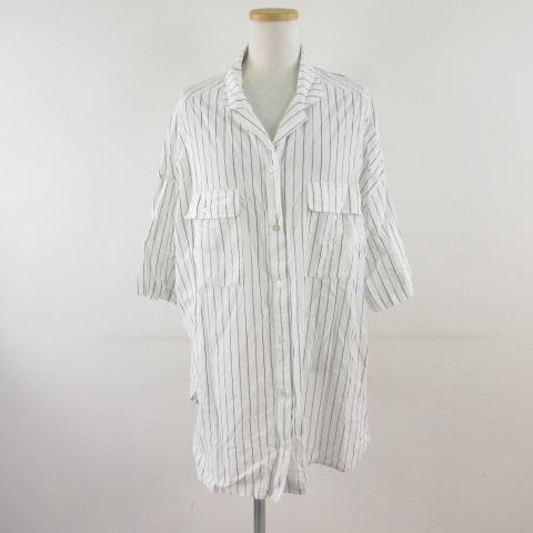【中古】アメリカンホリック AMERICAN HOLIC シャツ ブラウス 七分袖 ストライプ オフホワイト 白 L *T804 レディース