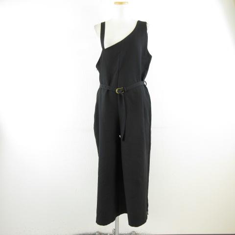 【中古】未使用品 ハグユー HUG.U サロペット オールインワン ワイド ロング 黒 M *A521 レディース
