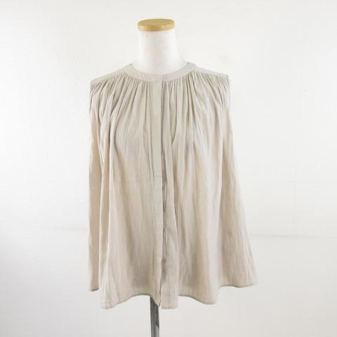 【中古】ナチュラルビューティーベーシック NATURAL BEAUTY BASIC サテンギャザーブラウス ノースリーブ ベージュ S