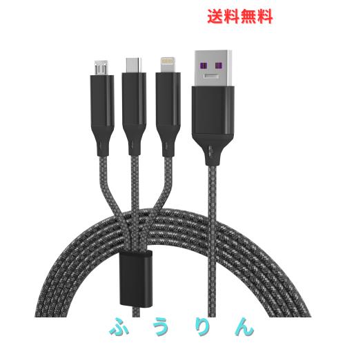 ?【高い耐久性】充電コード 3in1 耐久性が抜群なアルミニウム合金とナイロン編みのでを使用し、柔軟性が良く。取り回しやすく、絡まりを防ぎ、柔らかくて断線しにくい。一般的なケーブルより8倍以上長持ちします。