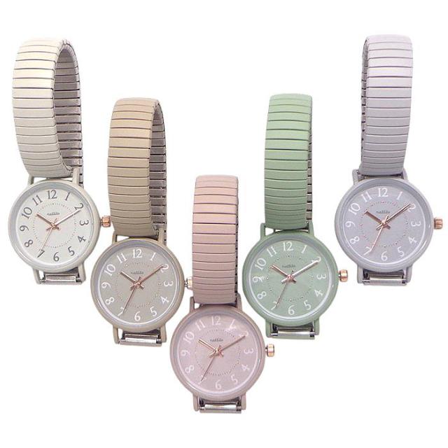 レディース 腕時計 ジャバラ エクスパンションベルト JN050 くすみ マットカラー ダルカラー レディス 日本製ムーブ使用 おしゃれ かわいい 見やすい 軽量 エレガント 蛇腹 伸縮ベルト ベルト調整不要