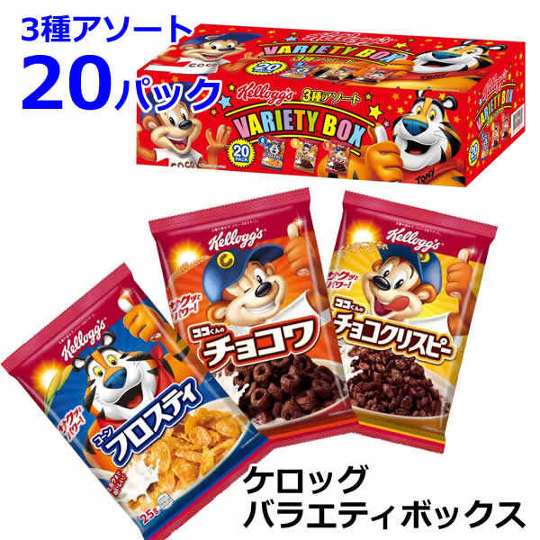 【送料無料】ケロッグ バラエティボックス 3種 20パック 赤箱 朝食シリアル 小分け コーンフロスティ ココくんのチョコクリスピー ココくんのチョコワ 全20袋 おやつ 栄養満点