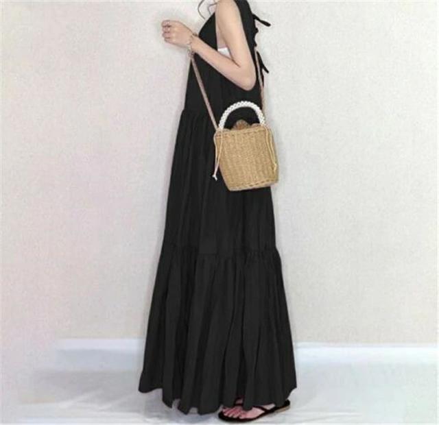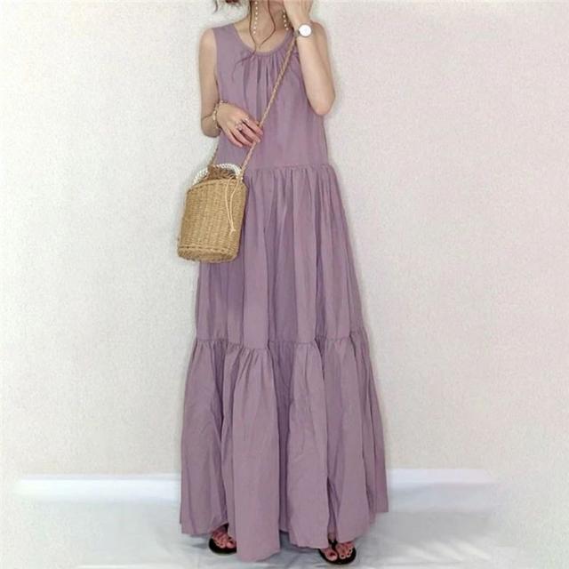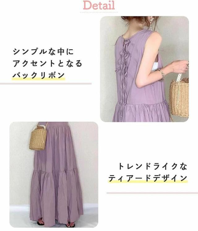 森ガール ワンピース 夏 レディース ロング丈ワンピース ティアード フリル フリーサイズ ゆったり 丸首 膝丈 パープル 可愛い オシャレ 30代40代50代 体型カバー ワンピース カジュアル 夏 背中 開き 後ろリボン 黒ワンピース 夏 送料無料