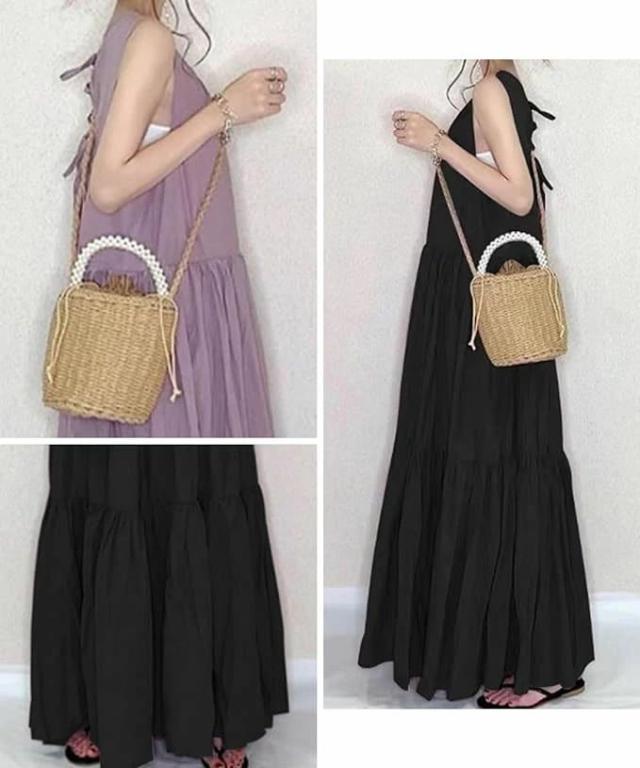 バックリボンがお洒落で可愛いノースリーブのワンピース。
