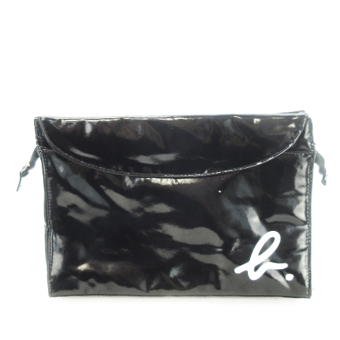 【中古】アニエスベー agnes b. BEAUTE クラッチバッグ セカンドバッグ エナメル コーティング ロゴ 黒 ブラック