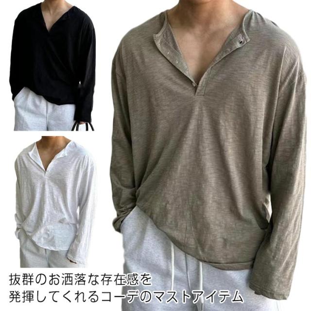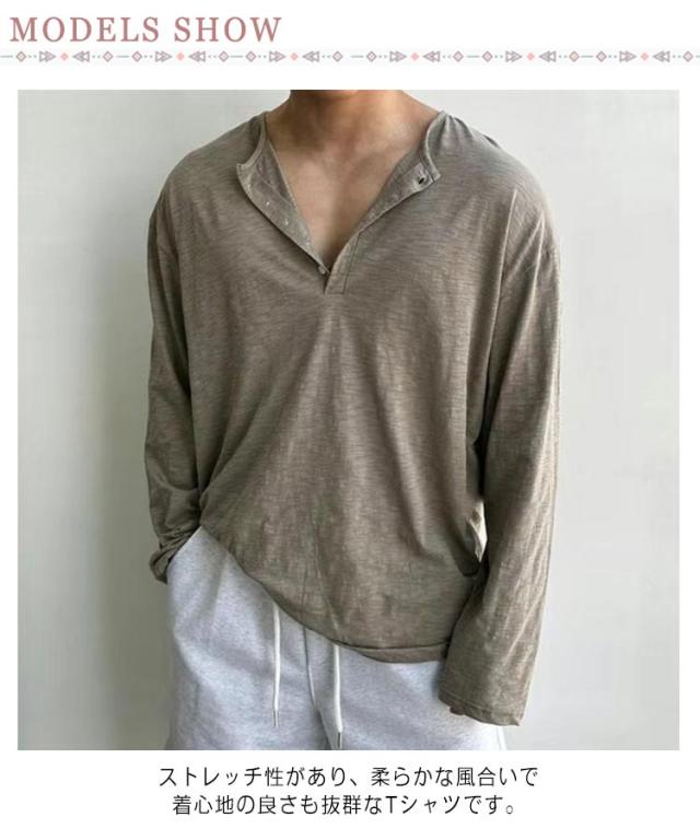 tシャツ 長袖 Tシャツ メンズ メンズ 長袖tシャツ おしゃれ ヘンリーネックtシャツ メンズ トップス メンズファッション ロンt ヘンリーネック 長袖Tシャツ きれいめ シンプル カットソー かっこいい 春 春夏