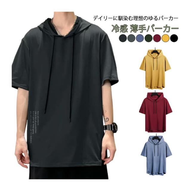 プルオーバー 半袖 パーカー 夏用 メンズ 無地 トップス 薄手 サマーパーカー パーカ 冷感 薄手パーカー 夏 パーカー フード付き カジュアル スポーツ 半袖パーカー 団体服 夏パーカー 半袖 全6色 運動着 部屋着 夏服 スポーティ ダンス