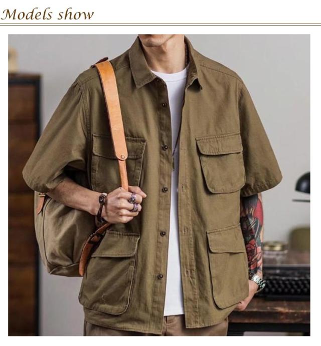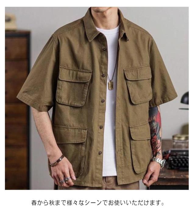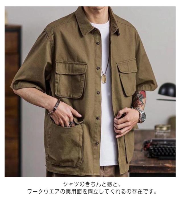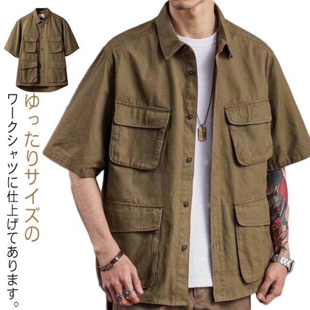 半袖シャツ カーゴシャツ メンズ 夏 半袖 ミリタリーシャツ カジュアルシャツ ワークシャツ 開襟シャツ トップス ポケット付き 20代 30代 40代 ゆったり 大きいサイズ シンプル カジュアル 春夏 春秋 お出かけ 送料無料