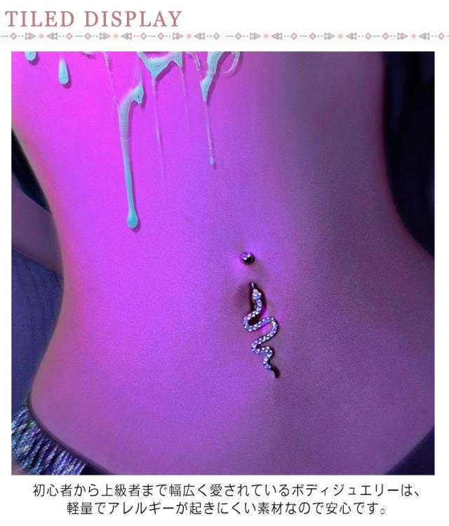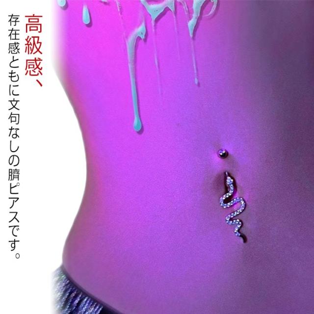 | 高級感、存在感ともに文句なしの臍ピアスです。 初心者から上級者まで幅広く愛されているボディジュエリーは、軽量でアレルギーが起きにくい素材なので安心です。 | |