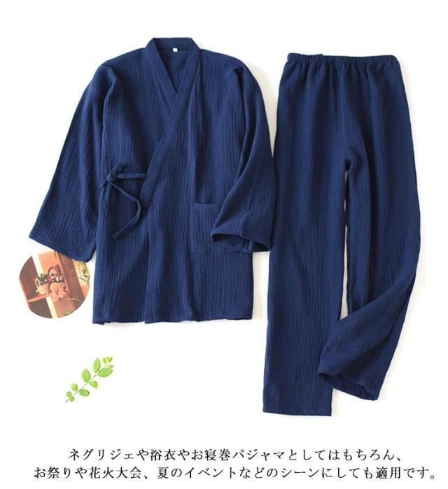 甚平 レディース 上下セット 綿 無地 長ズボン じんべえ じんべい 和服 着物 キレイめ 作業着 作務衣 部屋着 パジャマ 温泉浴衣 ルームウエア 寝間着 寝巻き 普段着 介護 入院着 男女兼用 カップルペア 快適性 プレゼント 送料無料