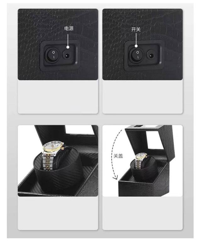 | サイズについての説明 | 【サイズ】:12×13×15cm 【回転数】:毎分(6.5-8.5回転) 【電圧】:本商品は2WAYの給電方法で、電源(電圧:100-240V、50/60Hz、0.3A)対応。世界中で使用可能で、または電池(単4形乾電池2本)でも使用可能です。 【外部材質】:外側はブラックPU及びブラウンPU、外側はブラックカーボンファイバーPU、外側はクロコダイルパターンPUの5種類の外素材が選べます。 【内部材質】:灰色ビーズベルベット/ブラックカーボンファイバー 【モーター】:超静音モーター 【機能説明】:プログラム:このプログラムは時計回りと反時計回りの回転を行います。まず反時計回りに2分回転し、6分間停止。その後、時計回りに2分回転し、再び6分間停止、これを繰り返します。 |