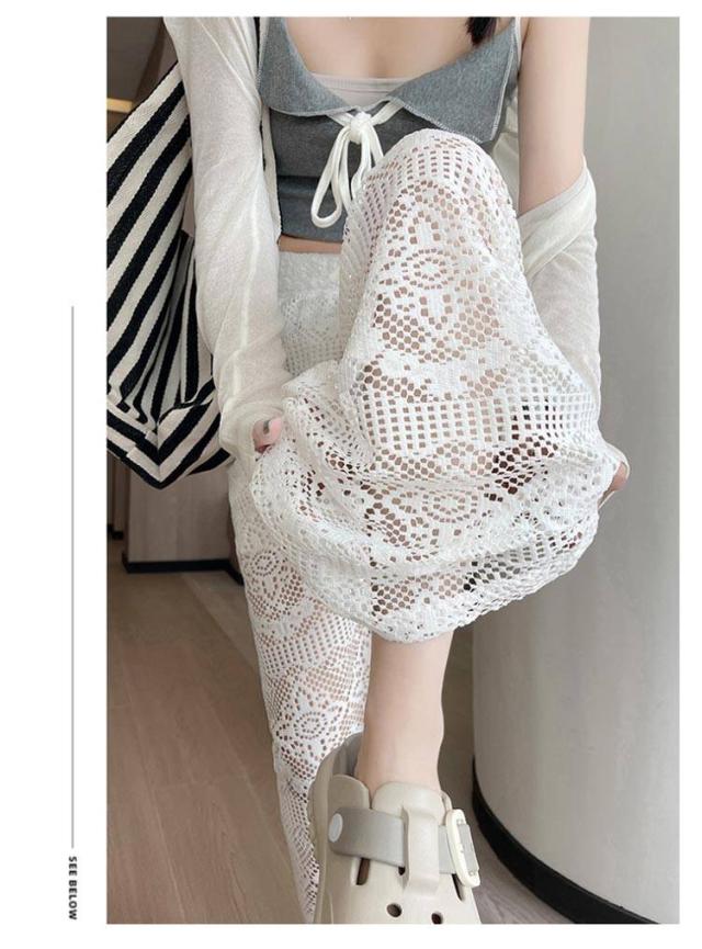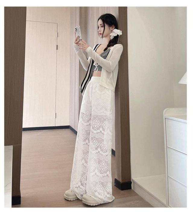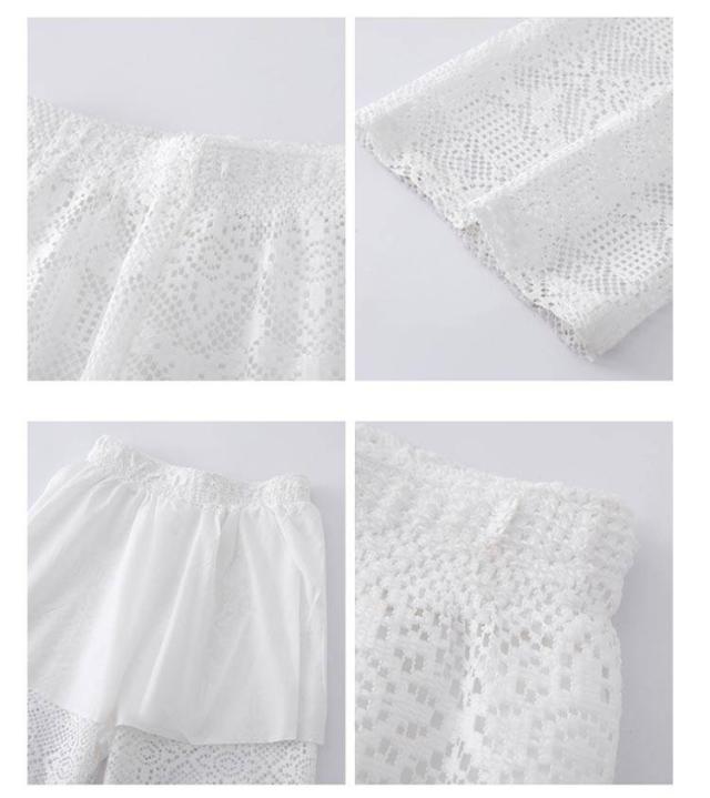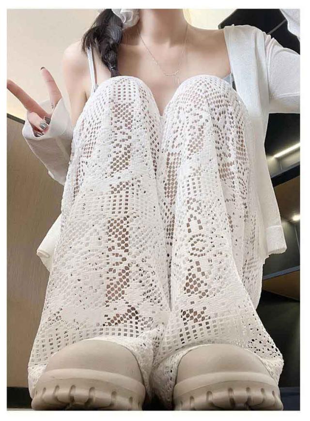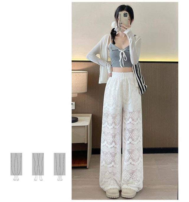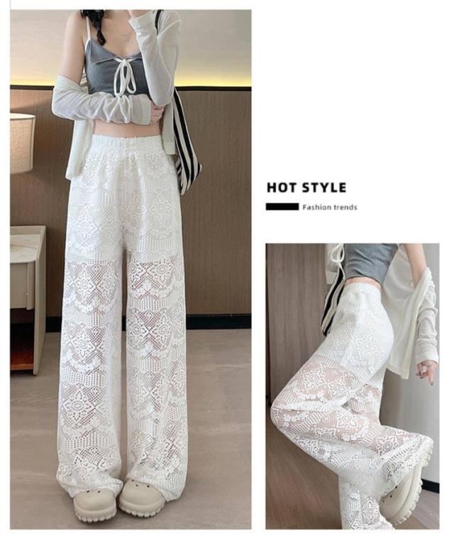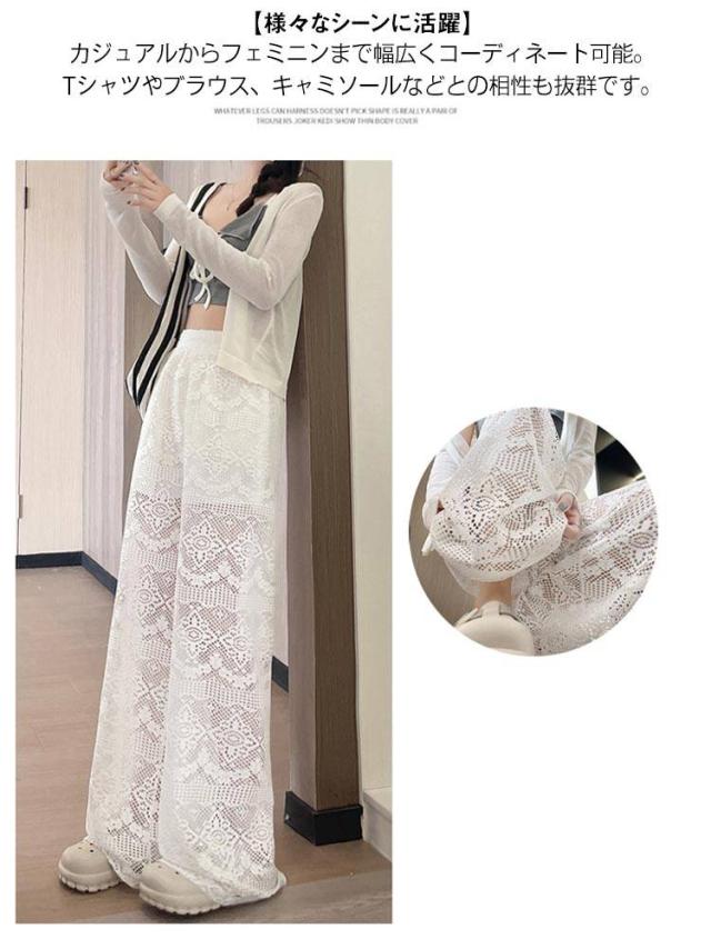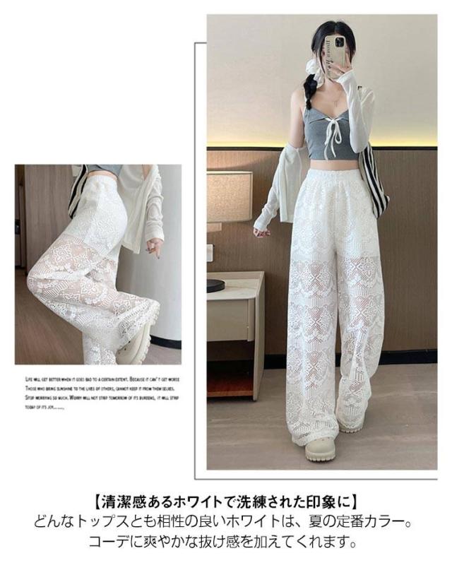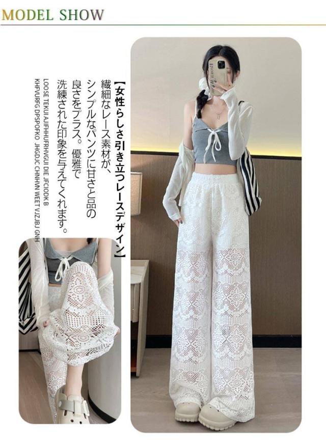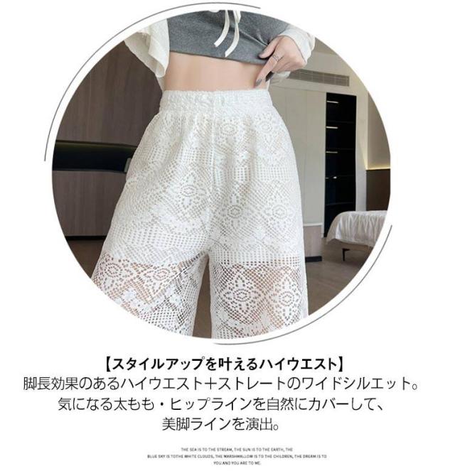 ホワイトレース ワイドパンツ レディース レースワイドパンツ ハイウエスト ガウチョパンツ ストレートパンツ 美脚 ロングパンツ 透け感 白パンツ 夏用 ゆったり 可愛い