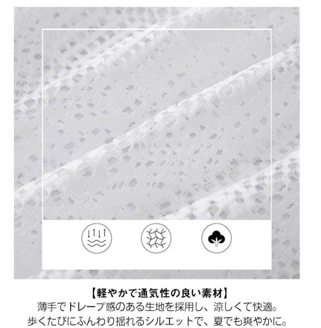 | 【女性らしさ引き立つレースデザイン】 繊細なレース素材が、シンプルなパンツに甘さと品の良さをプラス。優雅で洗練された印象を与えてくれます。 【軽やかで通気性の良い素材】 薄手でドレープ感のある生地を採用し、涼しくて快適。歩くたびにふんわり揺れるシルエットで、夏でも爽やかに。 【スタイルアップを叶えるハイウエスト】 脚長効果のあるハイウエスト+ストレートのワイドシルエット。気になる太もも・ヒップラインを自然にカバーして、美脚ラインを演出。 【様々なシーンに活躍】 カジュアルからフェミニンまで幅広くコーディネート可能。Tシャツやブラウス、キャミソールなどとの相性も抜群です。 【清潔感あるホワイトで洗練された印象に】 どんなトップスとも相性の良いホワイトは、夏の定番カラー。コーデに爽やかな抜け感を加えてくれます。 | |