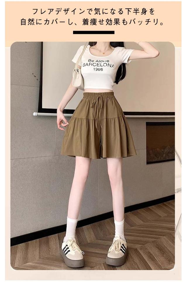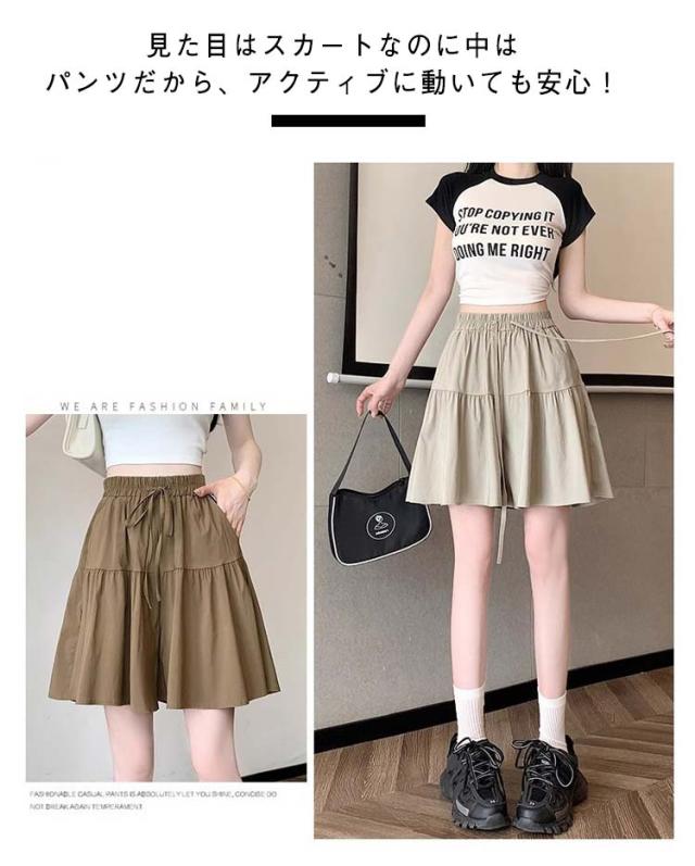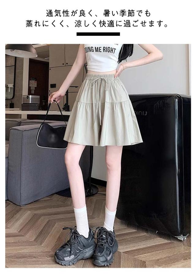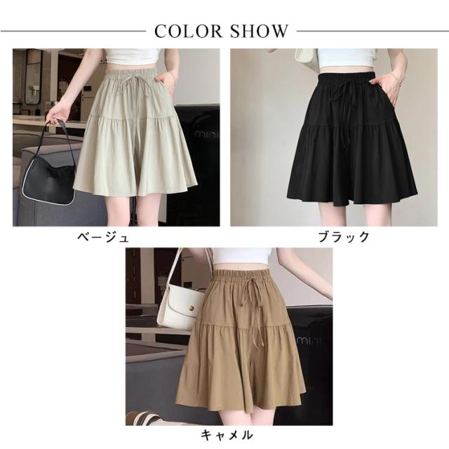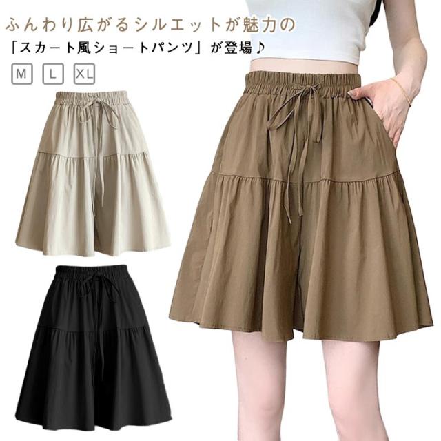 ポケット付き ウエストゴム レディース ショートパンツ ショーパン 着痩せ 短パン キュロット スカート風 ゆったり ハーフパンツ ショートパンツ カジュアル 部屋着 ルームウェア リラックス 夏服 可愛い
