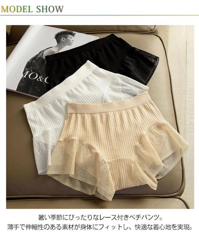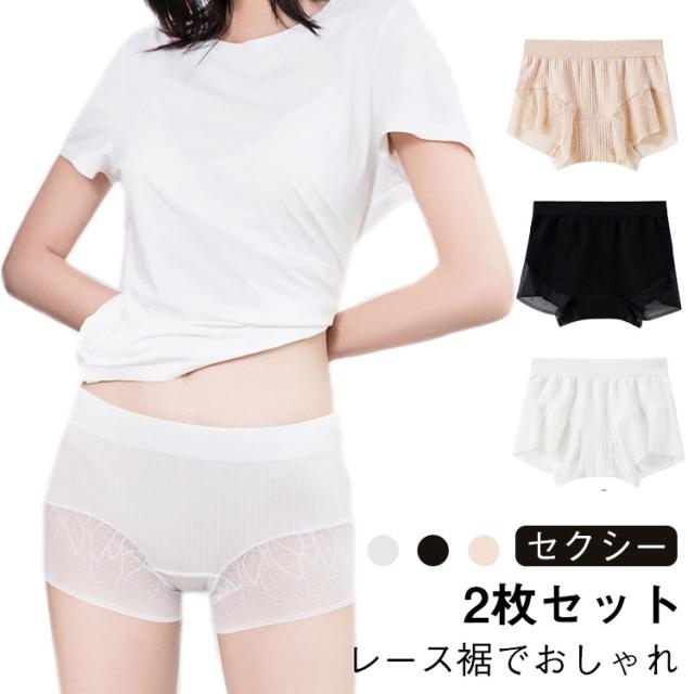 【2枚セット】見せパン 防止 パンツ 裾レース ペチパンツ 下着 レディース インナーパンツ ショーツ リブ パンツ 夏用 ショートパンツ
