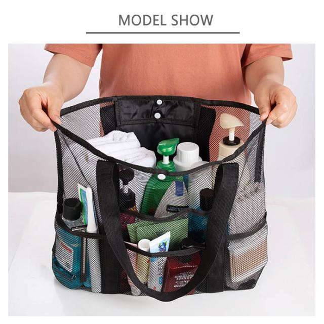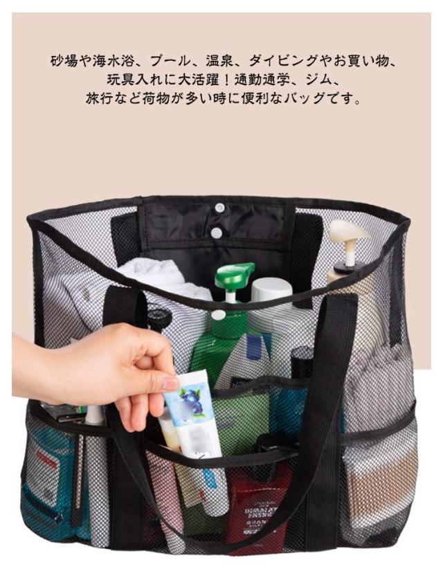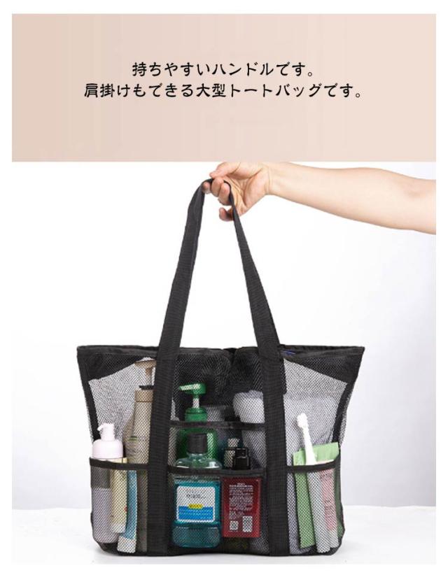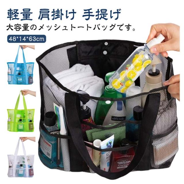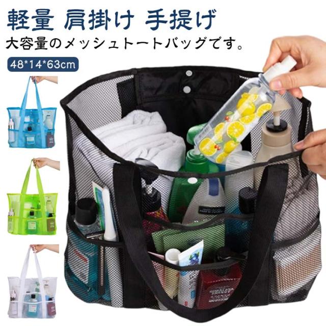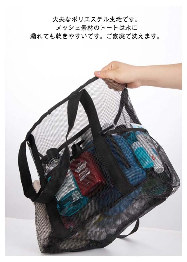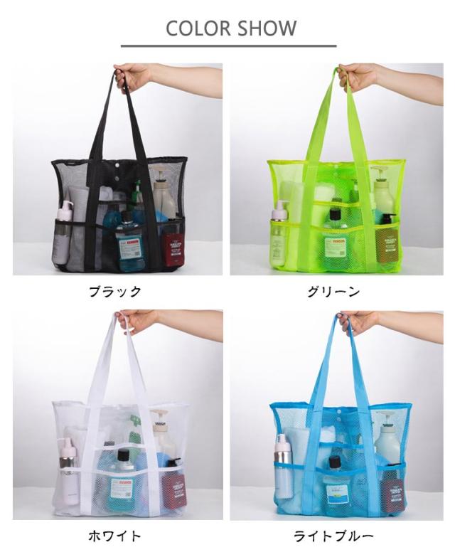 送料無料 メッシュバッグ ビーチバッグ ビーチトートバッグ プールバッグ メッシュ トートバッグ 軽量 大容量 スパバッグ 温泉バッグ 9ポケット 肩掛け 手提げ お風呂バッグ ジム 温泉 銭湯 プール 砂場 水泳 海水浴 水遊び バッグ 大きめ スイミングバッグ