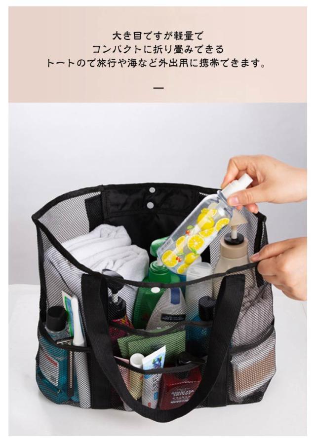 | 大容量のメッシュトートバッグです。砂場や海水浴、プール、温泉、ダイビングやお買い物、玩具入れに大活躍!通勤通学、ジム、旅行など荷物が多い時に便利なバッグです。 持ちやすいハンドルです。肩掛けもできる大型トートバッグです。 大き目ですが軽量でコンパクトに折り畳みできるトートので旅行や海など外出用に携帯できます。 網目なので砂や水が底に溜まりません。 丈夫なポリエステル生地です。メッシュ素材のトートは水に濡れても乾きやすいです。ご家庭で洗えます。 | |