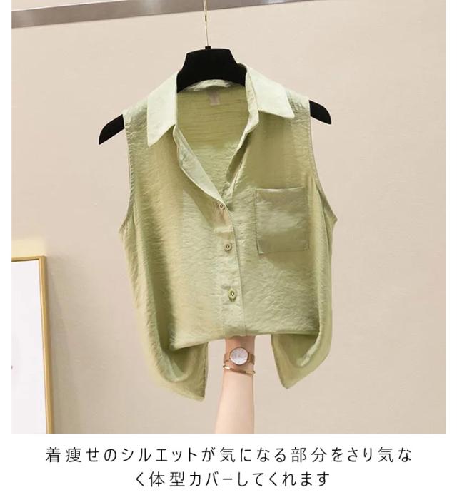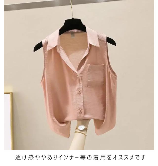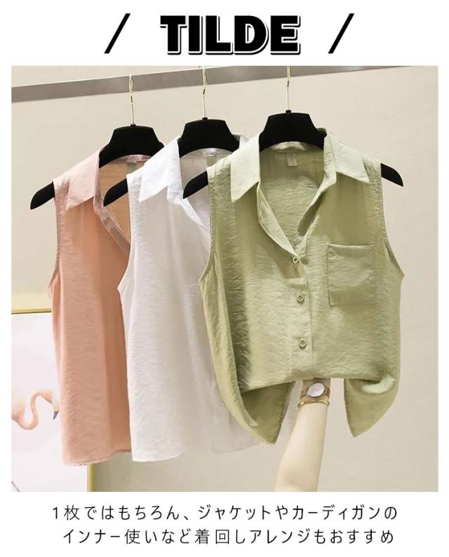 タンクトップ ノースリーブ 袖なしシャツ ノースリーブ Yシャツ ブラウス インナー カジュアル 体型カバー レディース カジュアル おしゃれ 重ね着 襟付き ノースリーブ レイヤード きれいめ シャツ 着痩せ 夏 春夏 無地 トップス