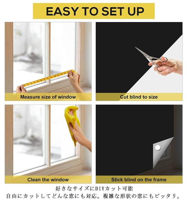 | 完全遮光・UVカット!遮光シート 簡単設置/工具不要 お部屋・車・オフィスなど、シーンに合わせて自由にカット可能! オックスフォード+裏面シルバーコーティングで太陽光・紫外線を強力カット!昼でも夜のような暗さ。 好きなサイズにDIYカット可能 自由にカットしてどんな窓にも対応。複雑な形状の窓にもピッタリ。 マジックテープでピタッと貼るだけ! 工具不要・穴開け不要・傷つけずに簡単取り付け。賃貸でも安心。 用途多彩: 寝室/子供部屋/オフィス/車中泊/キャンプ/目隠しなど。 | |