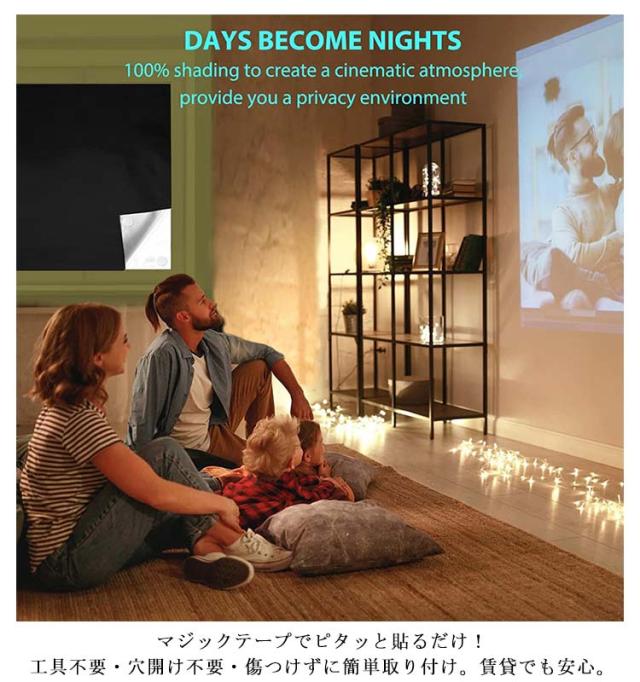 遮光シート 真っ黒 目隠し 貼るだけ マジックテープ付き 遮熱フィルム 遮光カーテン 日よけシート UVカット 防水 断熱シート 浴室 窓ガラス 部屋 オフィス 紫外線 西日対策 省エネ 暖房冷房効率UP 2m 3m