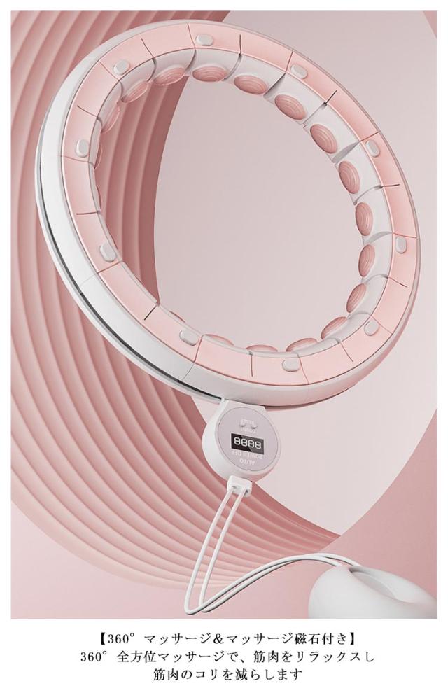 | 組み立て式 毎日30分で脂肪の燃焼&理想的な腰のくびれを速成! 45〜100kg対応 スマートフラフープ 【360°マッサージ&マッサージ付き】360°全方位マッサージで、筋肉をリラックスし、筋肉のコリを減らします。スマートフラフープの内側にマッサージボールが付いているため、エクササイズしながら基礎代謝の改善と便秘解消も期待できます。 【スマートカウンター機能】カウンター機能も搭載されており、回転回数を確認できます。 【静音】密封式静音軸は、使用時の滑りがスムーズで、騒音が80%低減されています。 | |