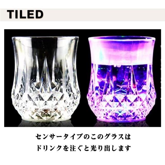 | 2個セット!7種色チェンジ可能の光るグラス。 センサータイプのこのグラスは、ドリンクを注ぐと光り出します! ドリンクを注ぐと気泡がLEDの光で美しく輝きます! 結婚式・クラブパーティー・ホームパーティーと使うシーンを選びません! 一度使うともう普通のグラスでの乾杯では物足らなくなること間違いなし! 水洗いで繰り返し使用可能。 | |
