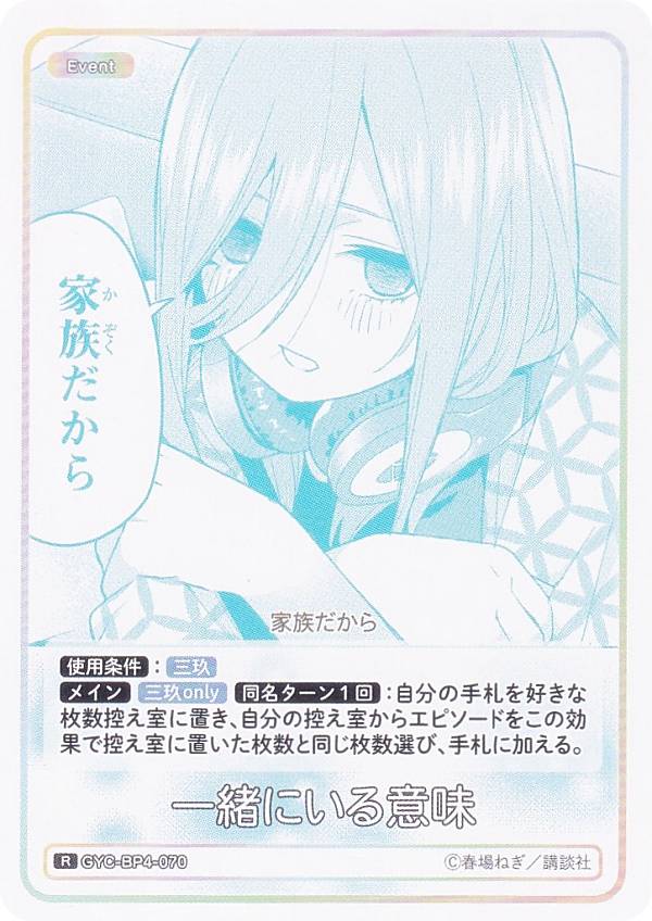 五等分の花嫁カードゲーム GYC-BP4-070 一緒にいる意味 (R レア) ブースターパック vol.4 偶然のない夏休み