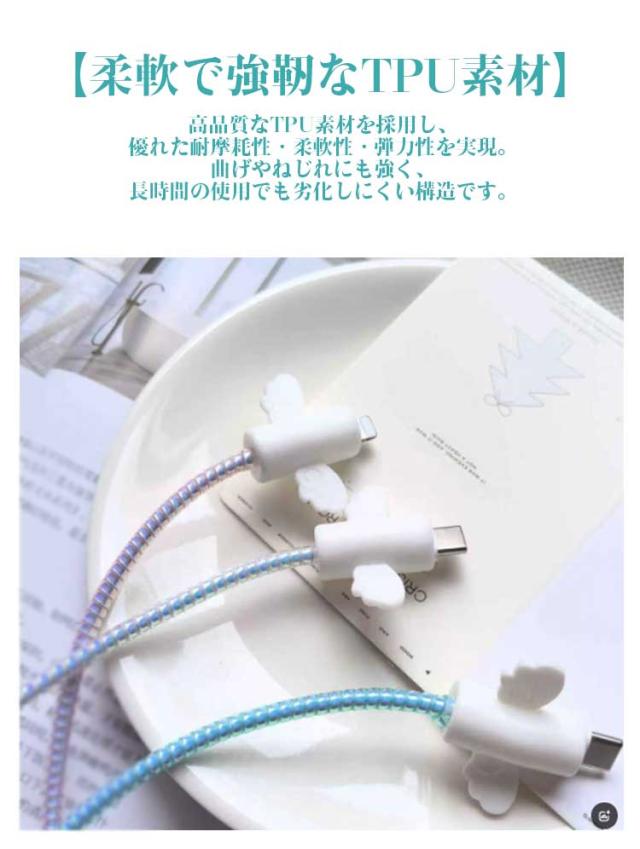 ケーブルプロテクター ケーブル収納カバー コネクター保護 保護カバー ライトニングケーブル 結束バンド付き データラインプロテクター TPU素材 断線防止 折り防止 汚れ防止 耐摩耗性 ペット噛み防止 送料無料