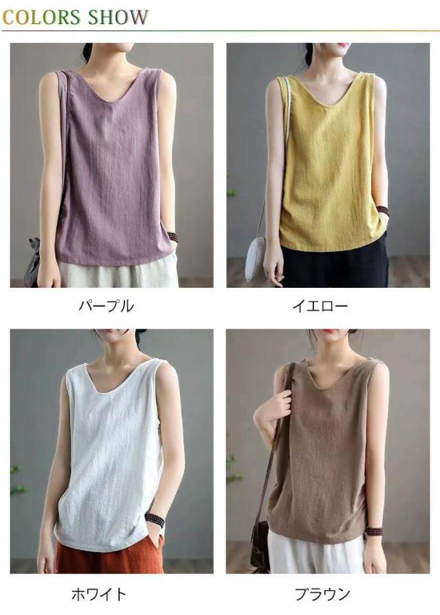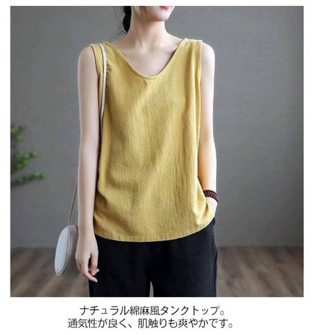 リネン 夏服 綿麻風トップス キャミソール タンクトップ 綿麻風トップス トップス 涼しい 薄手 タンク ナチュラル ノースリーブ 綿麻風 サラサラ ルームウエア 無地 シャツ おしゃれ 可愛い 大人 女性 肌着 部屋着 シンプル インナー 重ね着