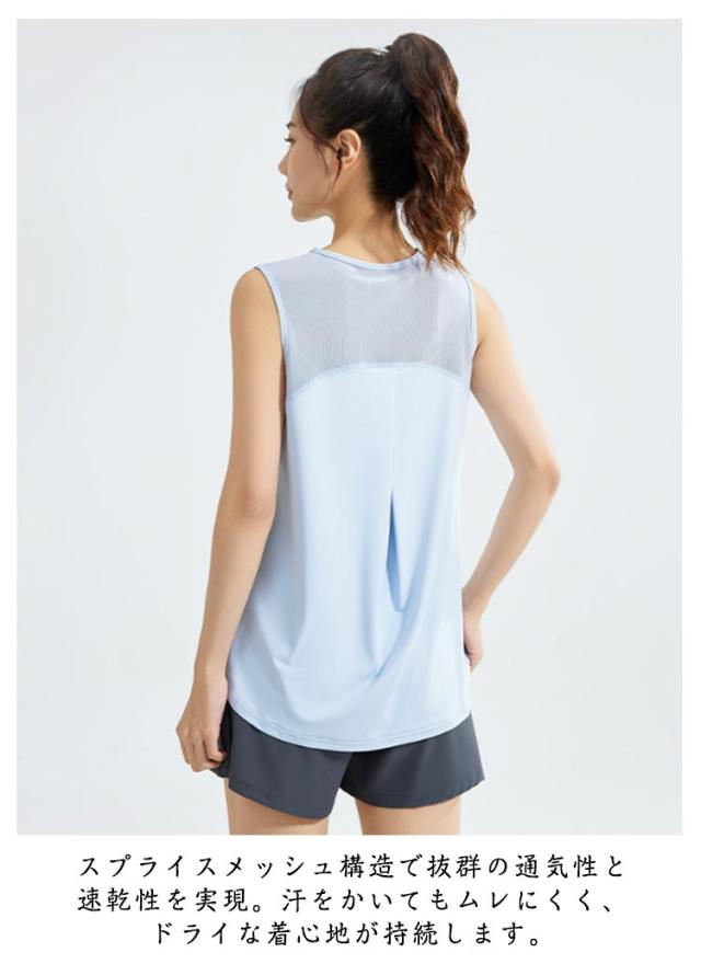 レディース タンクトップ ヨガウェア ノースリーブ Tシャツ 吸汗速乾 メッシュ フィットネスウェア トップス 涼しい 夏用 大きいサイズ 袖無し スポーツウェア ランニング ゆったり 体型カバー 快適 通気性 軽量 筋トレ ピラティス ウォーキング 運動着