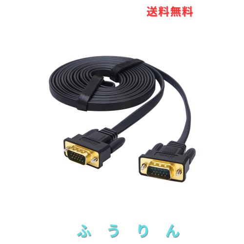 DTECH ディスプレーケーブル VGAケーブル 5m D-Sub 15pin オス-オス 超薄型フラットデザイン (5m, ブラック)