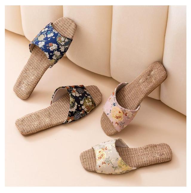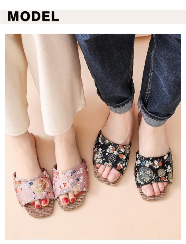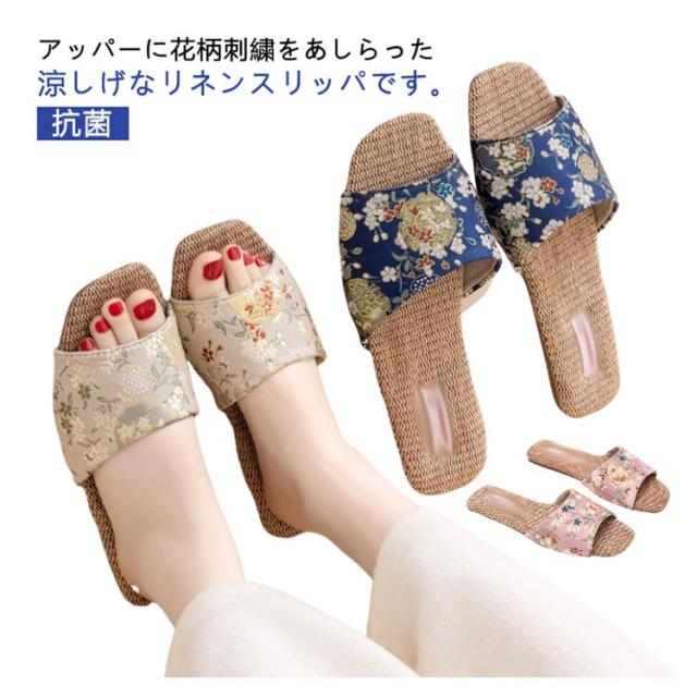 スリッパ リネンサンダル レディース 麻スリッパ 刺繍 花柄 ぺたんこ ルームシューズ フラットサンダル 室内履き ルームスリッパ 涼しい 蒸れない 軽量 歩きやすい 疲れない 痛くない 抗菌 防臭 春 夏 洗える 来客用 学校行事 春用 夏用 送料無料
