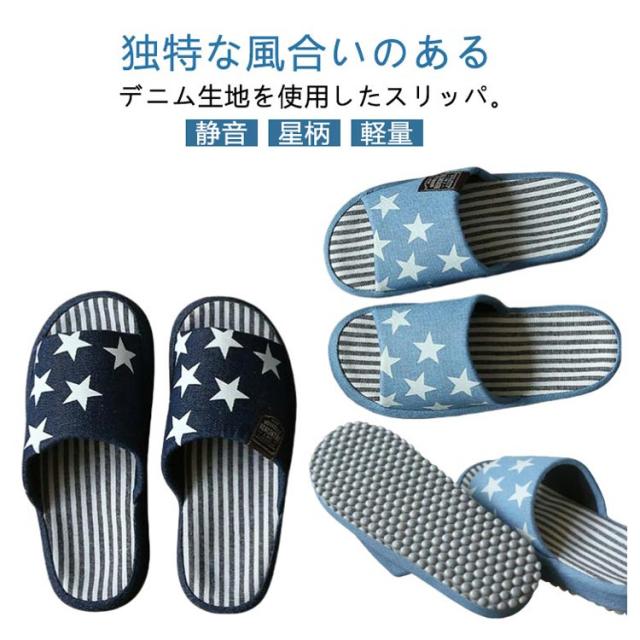 デニム スリッパ ルームシューズ おしゃれ ルームスリッパ 来客用 室内履き 静音 部屋履き 春 夏 メンズ レディース カップルペア デニムスリッパ 星柄 ユニセックス 滑りにくい 軽量 カジュアル 大きいサイズ 可愛い シンプル 父の日 送料無料