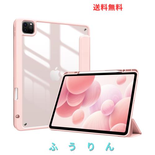 ProCase iPad Pro 12.9 ケース 第6/5/4/3世代に適用(2022 2021 2020 2018) 透明 クリアバックカバー ペン収納 耐衝撃 三つ折り スタンド