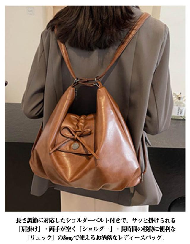 トートバッグ レディース 2way 3way バッグ リュック ショルダーバッグ フェイクレザー かわいい 通勤 ビジネス リュックサック 肩掛け 斜めがけ 可愛い リボン おしゃれ ファスナー付き 3wayバッグ 肩掛けバッグ ブラック ブラウン コーヒー