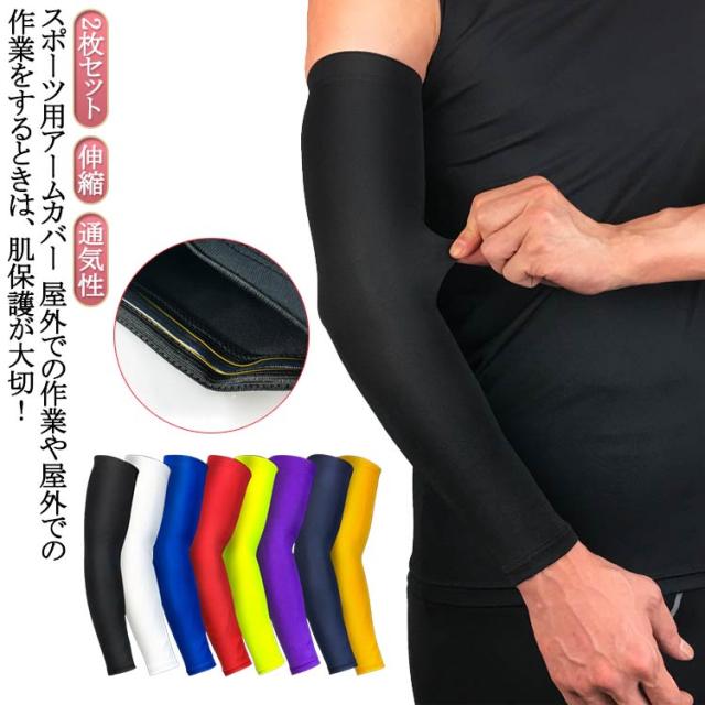 アームカバー uvカット 赤 ランニング 日焼け対策 野球 無地 紫外線カット uv メンズ カバー スポーツ レッド 腕 サイクリング イエロー 左右兼用 テニス 日焼け止め ロングタイプ キャンプ 2枚 登山 バスケットボール