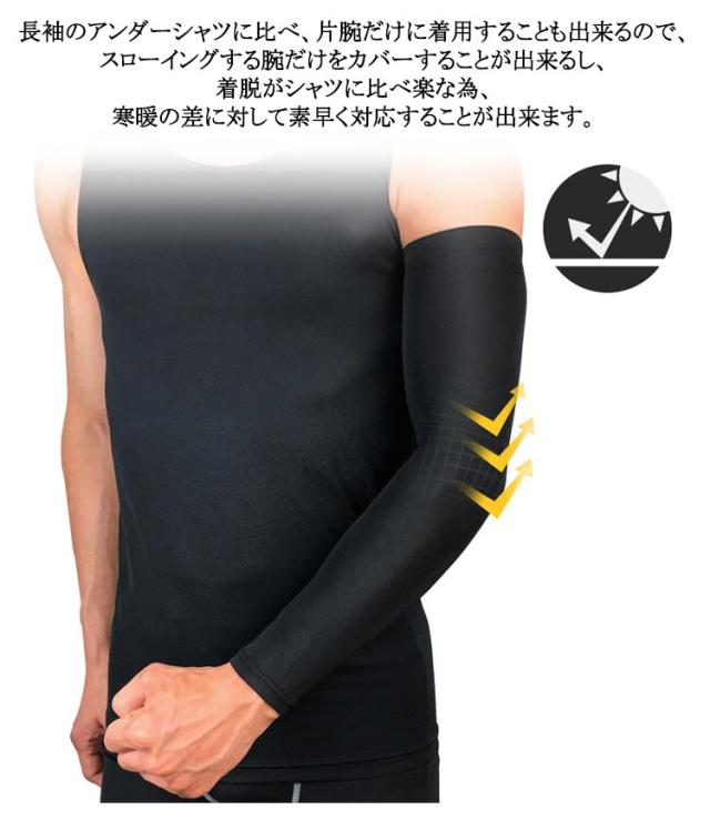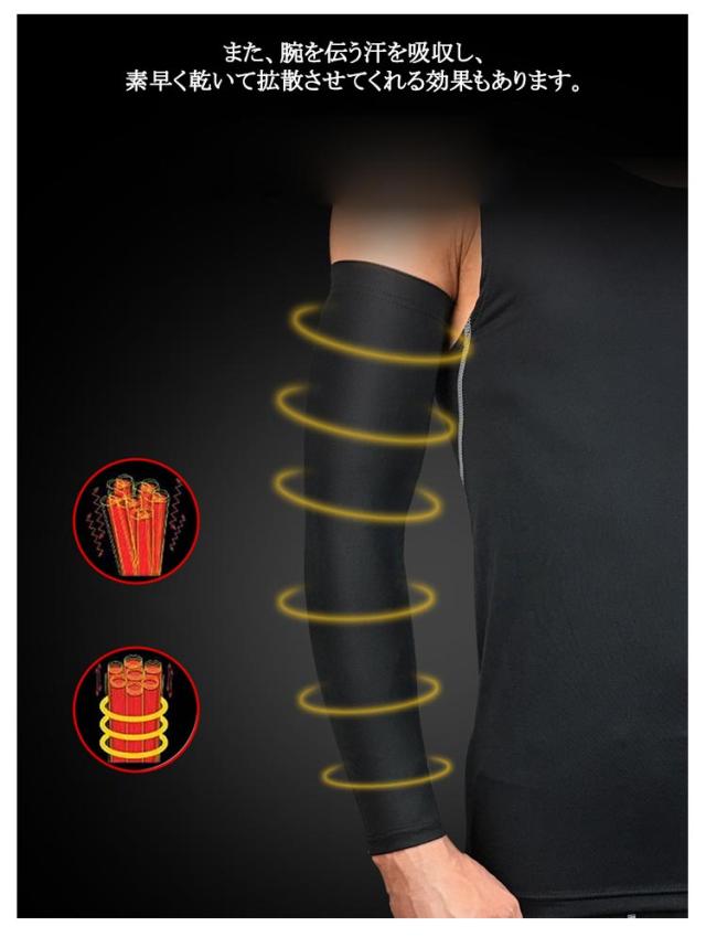 | 2枚セット!スポーツ用アームカバー 屋外での作業や屋外での作業をするときは、肌保護が大切! 軽量の通気性素材は、けがを防ぎ回復時間を短縮する能力を持っています。 適度な締め付けは筋群を活性化させます。筋肉を刺激することによって、トレーニング効果も向上するし、試合中であれば筋肉が温まりやすい状態になります。 また、腕を伝う汗を吸収し、素早く乾いて拡散させてくれる効果もあります。 長袖のアンダーシャツに比べ、片腕だけに着用することも出来るので、スローイングする腕だけをカバーすることが出来るし、着脱がシャツに比べ楽な為、寒暖の差に対して素早く対応することが出来ます。 サイクリング、ハイキング、ランニング、ジョギング、釣り、登山、バスケットボール、野球、テニスなどに適しています。 程よい締め付けのコンプレッションタイプのアームスリーブ。 | |
