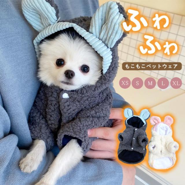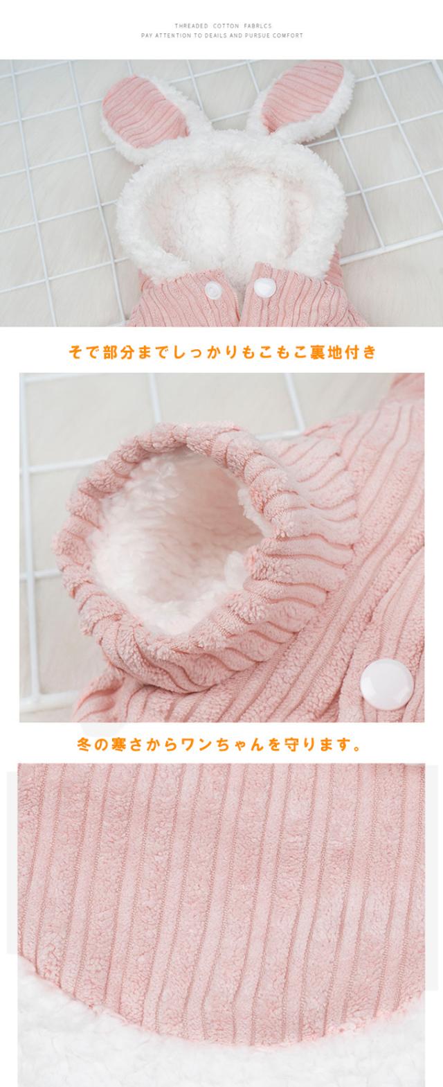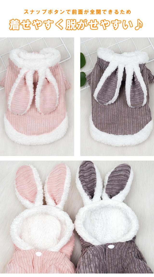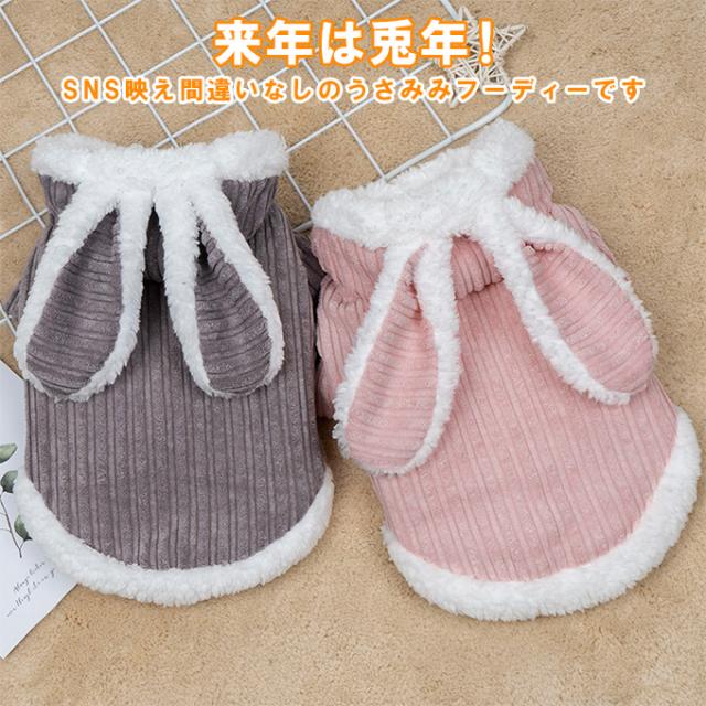 【500円OFFクーポン対象商品】 うさみみフーディー ペットウェア ペット服 うさぎ フリース素材 もこもこ かわいい ボタン仕様 兎年 裏起毛