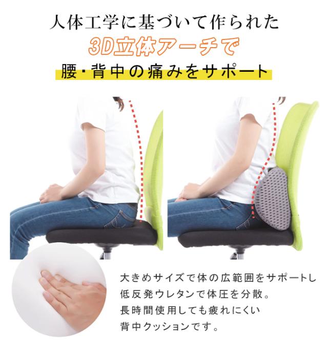 | コメント | 腰枕でお悩み解消 腰部分に当てて体圧分散効果でしかっりと腰を支えます 疲労回復やストレス軽減 腰痛軽減の効果も期待できます 人体工学に基づいて作られた 3立体アーチで腰・背中の痛みをサポートします ※モニター環境により多少色合いが異なりますので、予めご了承くださいませ。 | ||||||