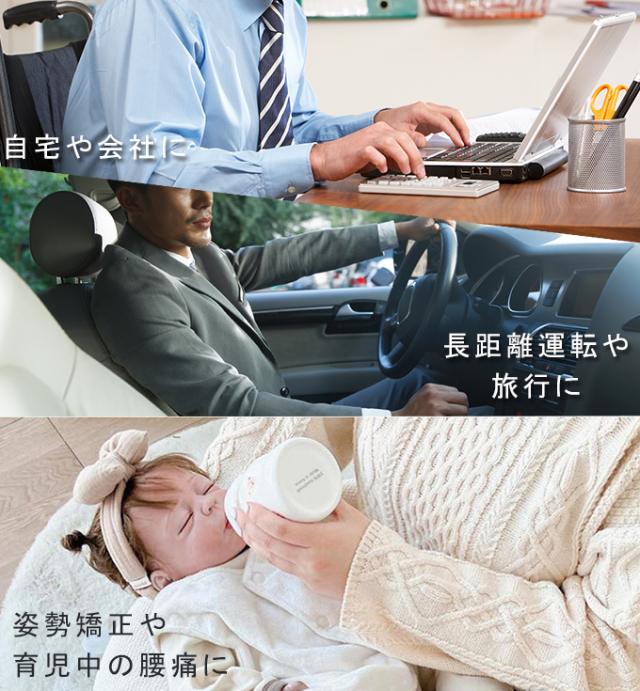 腰部分に当てて体圧分散効果でしかっりと腰を支えます