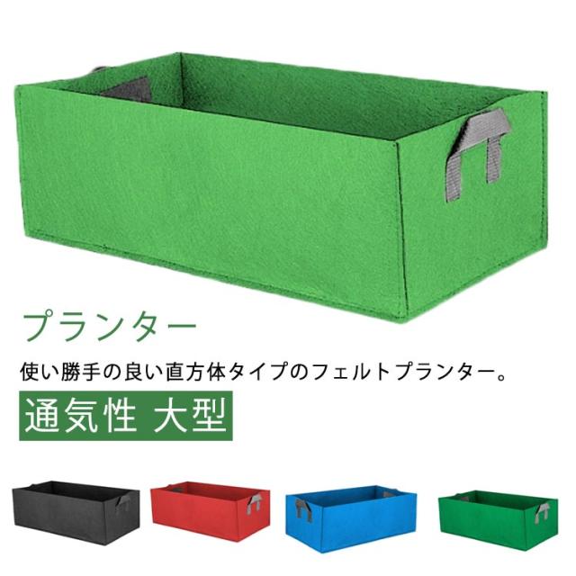 | 通気性 大型 プランター 使い勝手の良い直方体タイプのフェルトプランター。 不織布素材。通気性&透水性◎根腐れ防止に。 排水穴がなく虫の混入も防げます♪ 持ち手付き。軽量、持ち運びも楽ちん♪小さくなった鉢の植え替えに | |