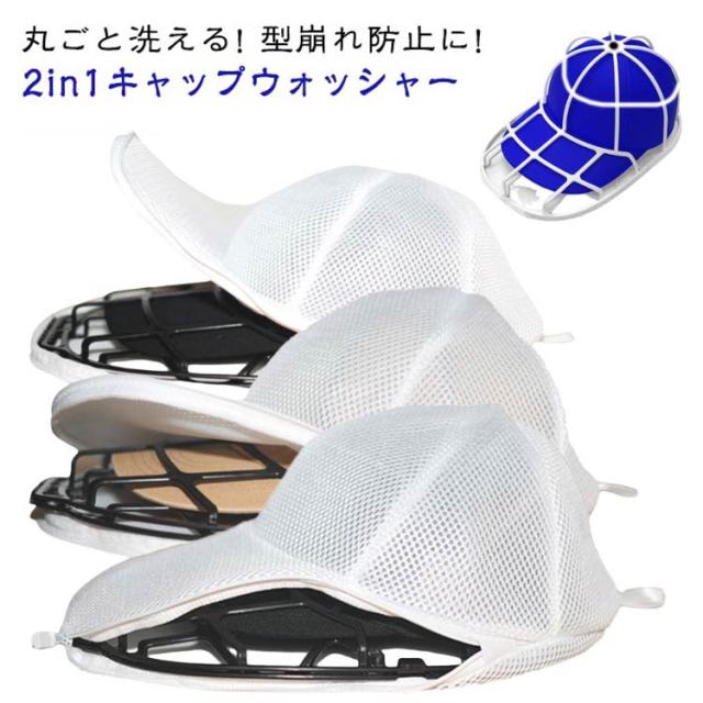 2in1 キャップウォッシャー 帽子 洗濯ネット キャップ ウォッシャー ホルダー ドラム式 洗濯機 対応 衝突防止 型崩れ防止 大人用 乾燥機 子供用 吊り下げ 収納 軽量 通学帽 野球帽 ピークドキャップ ヒップホップハット 洗濯