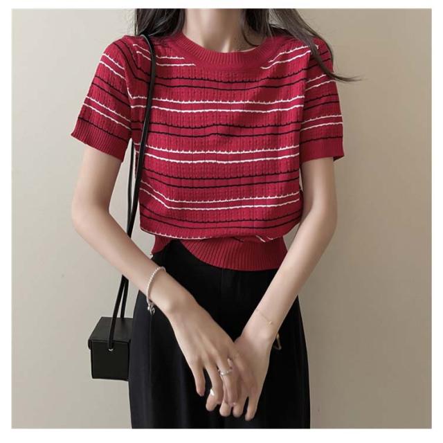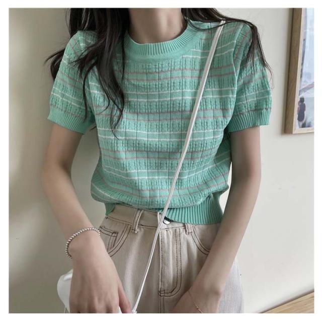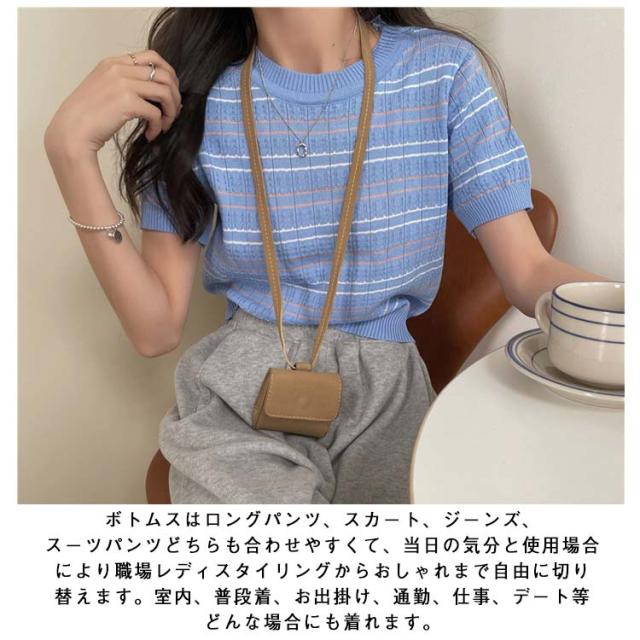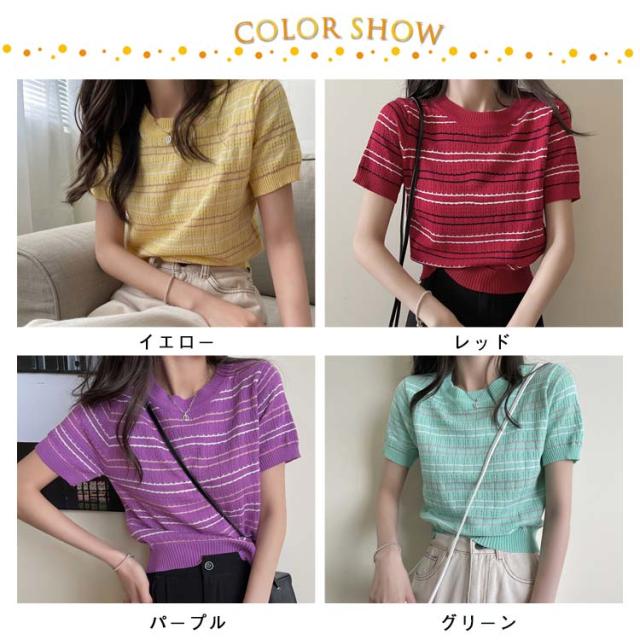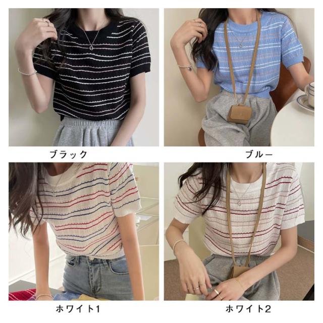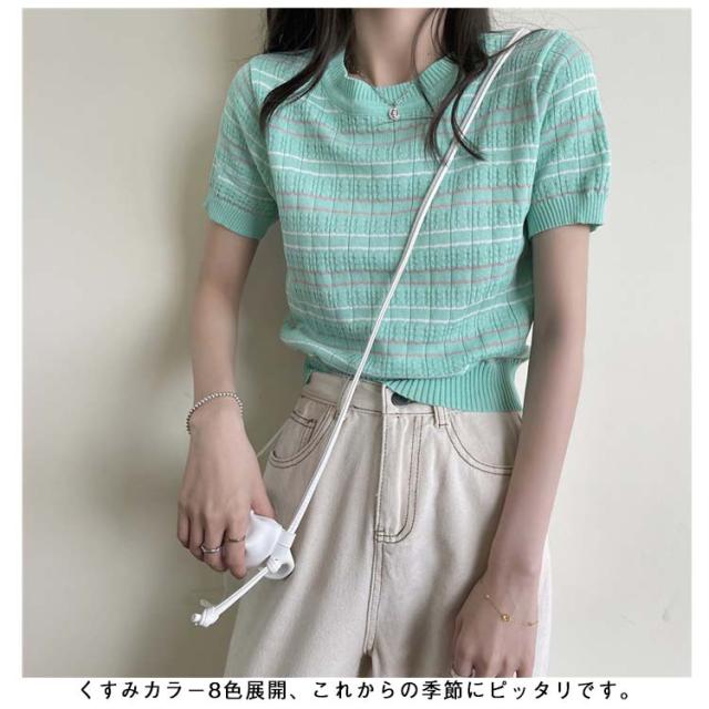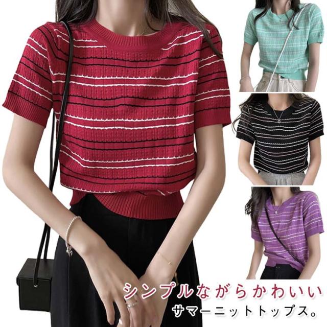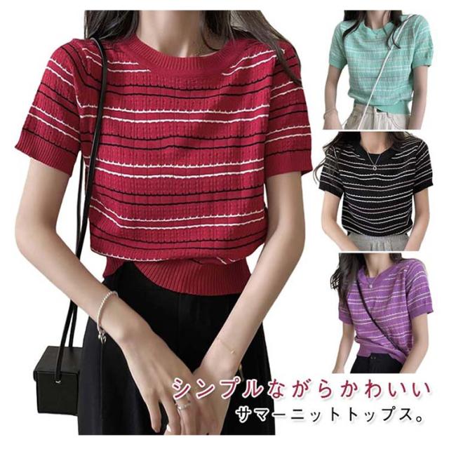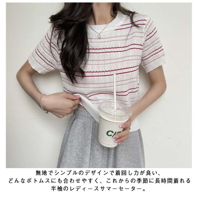 春 春夏 ボーダー柄 サマーニット トップス 半袖 ボーダー ニット おしゃれ 可愛い サマーセーター シンプル きれいめ 夏 Tシャツ ショート丈 韓国ファッション カジュアル ニットソー かわいい レディース 秋 普段着 ゆったり 薄手 大人 ニット 通学