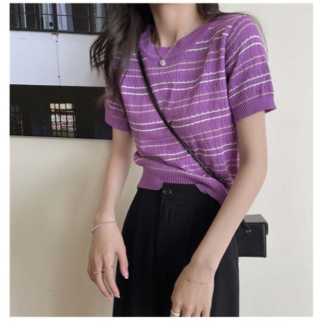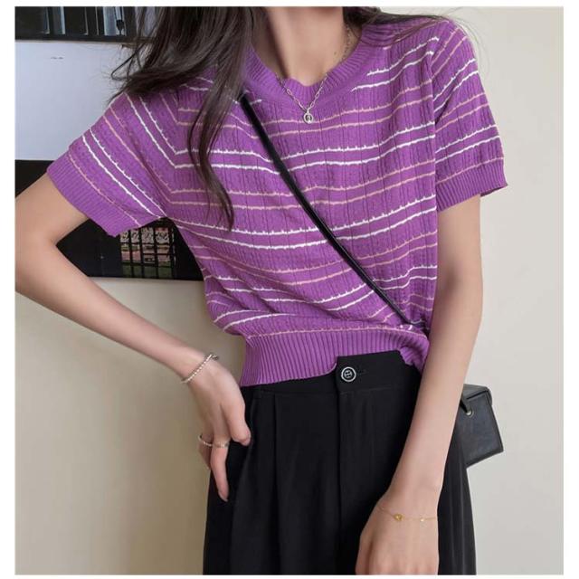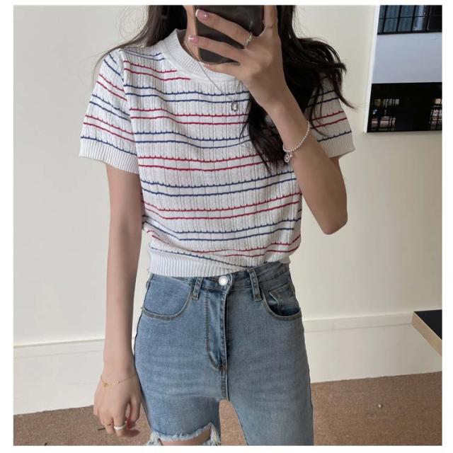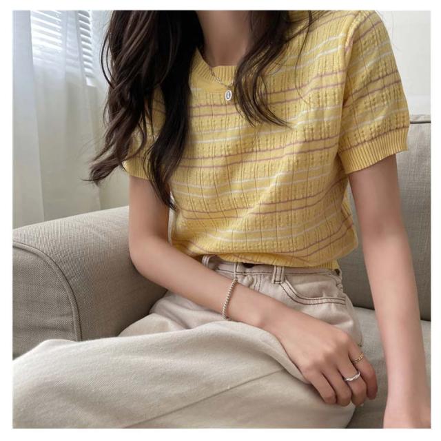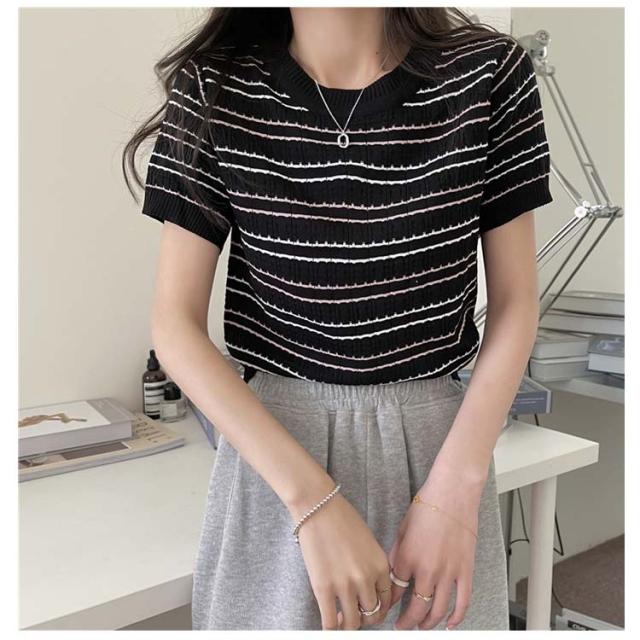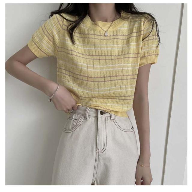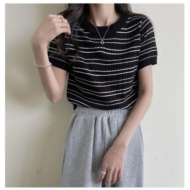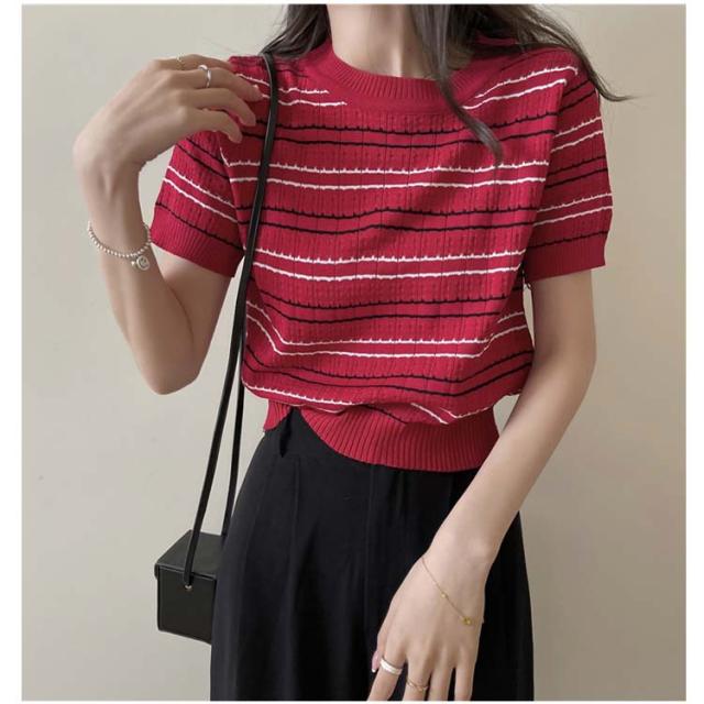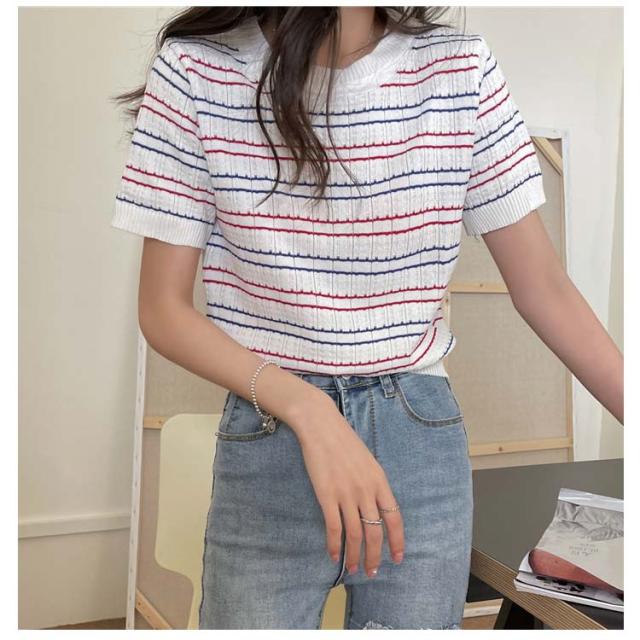 春 春夏 ボーダー柄 サマーニット トップス 半袖 ボーダー ニット おしゃれ 可愛い サマーセーター シンプル きれいめ 夏 Tシャツ ショート丈 韓国ファッション カジュアル ニットソー かわいい レディース 秋 普段着 ゆったり 薄手 大人 ニット 通学