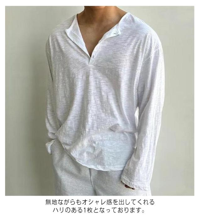 tシャツ ヘンリーネック メンズ 長袖 シンプル おしゃれ メンズ ヘンリーネックtシャツ Tシャツ トップス メンズファッション ロンt 長袖tシャツ 長袖Tシャツ きれいめ カットソー かっこいい ヘンリーネック 春 春夏