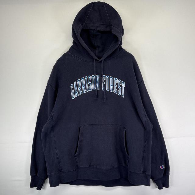 古着 チャンピオン Champion パーカー スウェット リバースウィーブ 大きいサイズ ロゴプリント プルオーバー 2XL ネイビー メンズ
