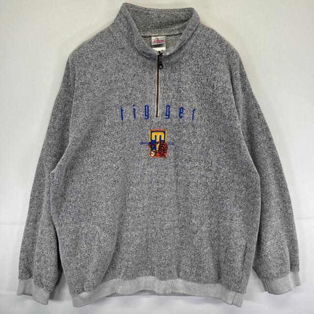 古着 90s/90年代 ディズニー Disney ニット ハーフジップ トレーナー 大きいサイズ ティガー刺繍 2XL グレー メンズ